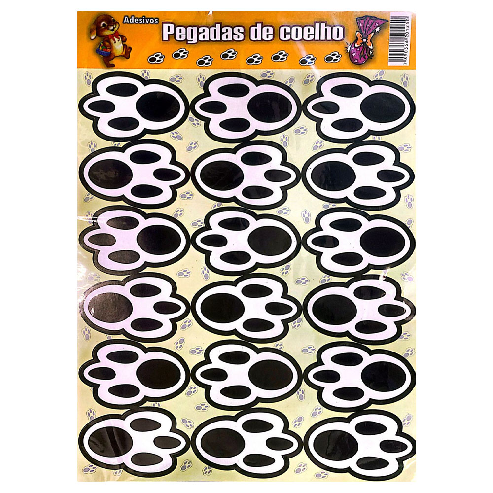 CARTELA ADESIVA PEGADAS PRETO 291