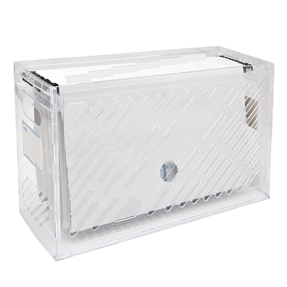 Organizador c/6 Pastas Dello Plus Cristal Dello Caixa para arquivo em poliestireno cristal com 6 pastas suspensas. Acompanha grampo plástico, visor e etiqueta. Dimensões: 425 x 145 x 270 mm