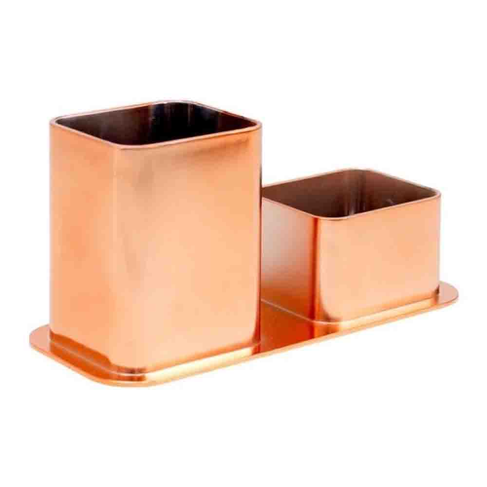 Porta Caneta/Clips Rose Gold Metalizado Dello Porta canetas, clips injetado em poliestireno. Excelente para acomodar objetos espalhados em cima da mesa. Medidas: 170x70x80mm