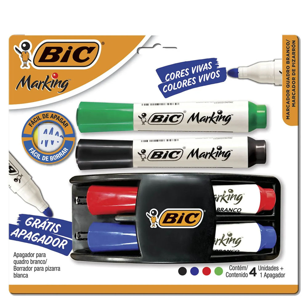 Marcador Quadro Branco Marking 4 Cores + Apagador BIC